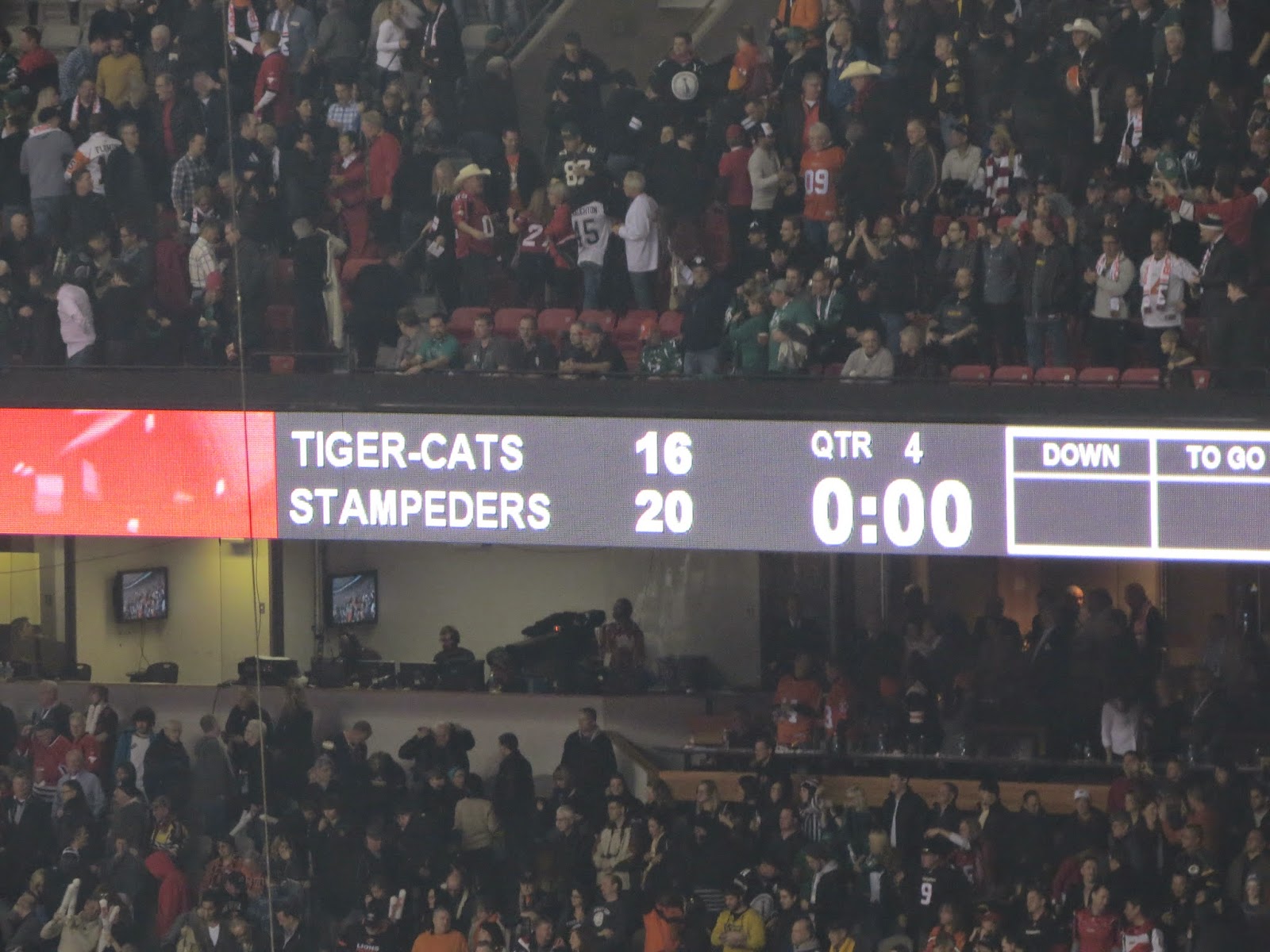 The Tiger-Cats scored a tentative go ahead TD with only 35 seconds left; unfortunately (for Tiger-Cat fans) there was a penalty call nullifying the TD.